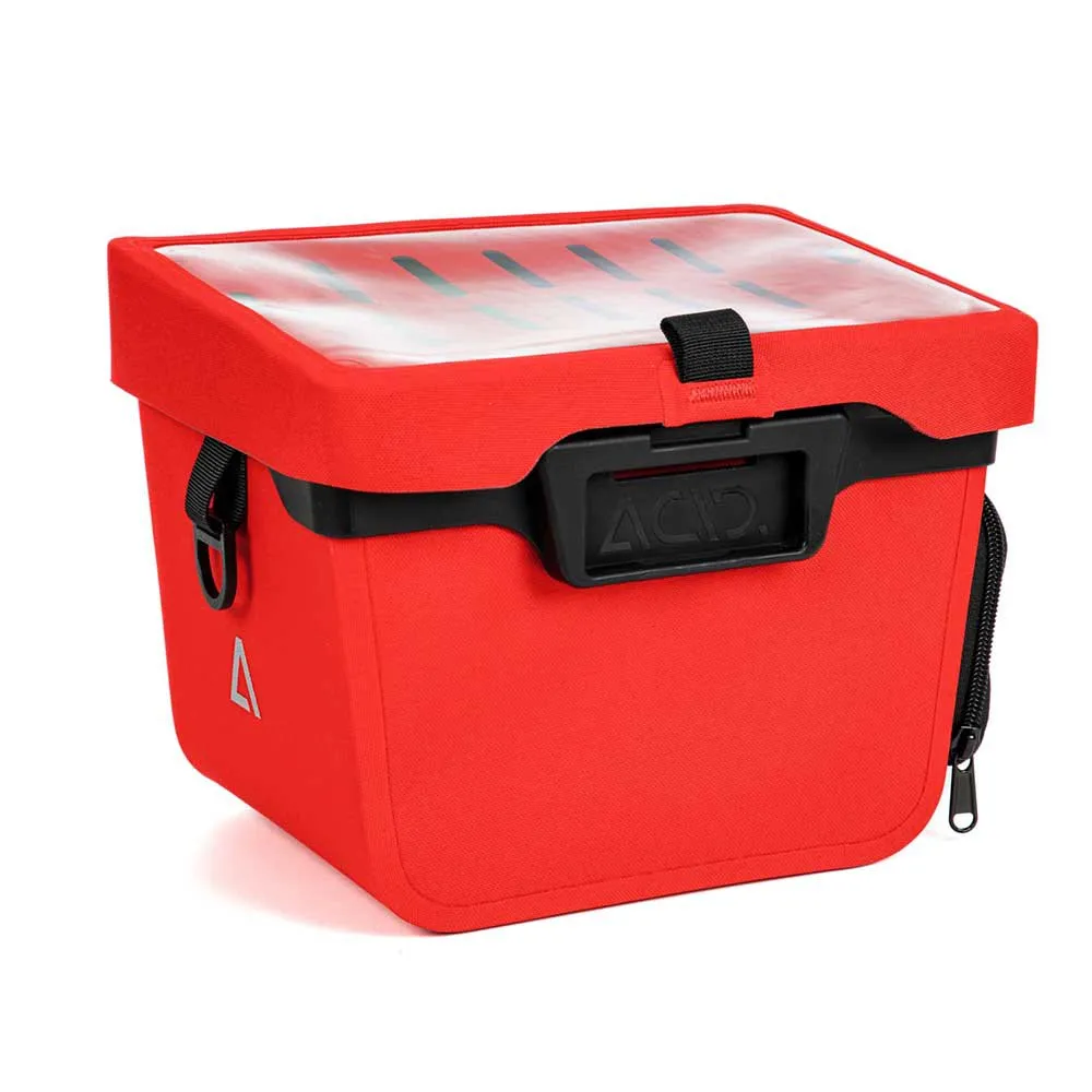 La bolsa funcional e impermeable TRAVLR FRONT PRO 7 viene con el sistema ACID FILink para una fijación rápida y segura. Una cómoda correa para el hombro lo lleva de la rejilla al hombro con facilidad. Y la ventana integrada con función de pantalla táctil significa que no hay necesidad de sacar su teléfono inteligente cada vez que necesite revisar sus mensajes o ruta. Incluso hay un bolsillo lateral plegable para guardar su botella para beber al alcance de la mano en todo momento. Los reflectores añaden visibilidad en todas las condiciones.