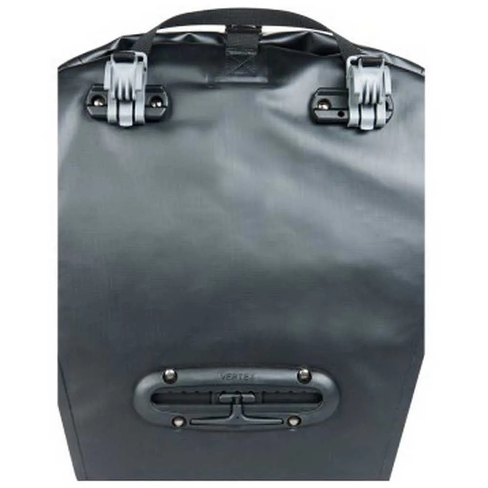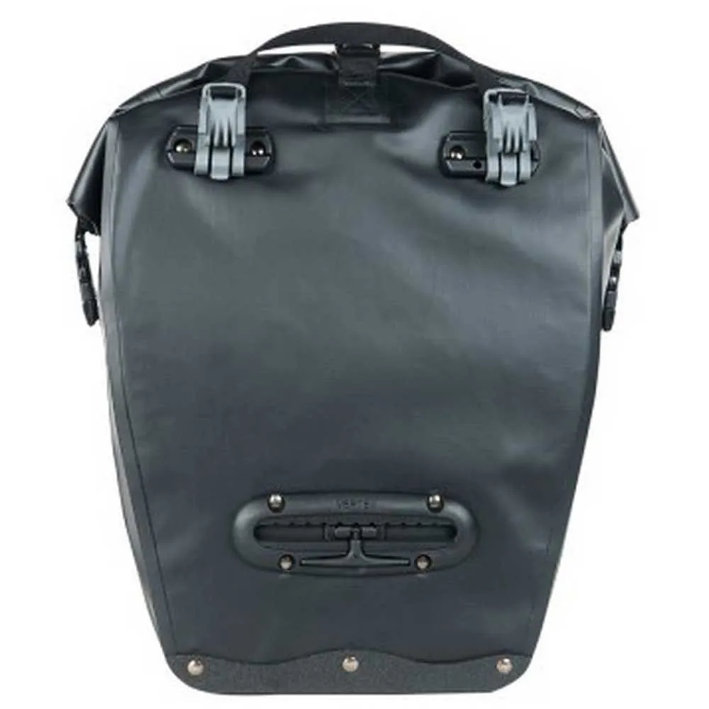 Alforja de PVC para colgar en el portaequipajes de una bicicleta. Resistente al agua y al barro, resistente a la pulverización de neumáticos gracias a sus costuras soldadas y su cierre superior enrollable. Tiene un volumen de 20 litros para uso diario o para ciclo turístico. Cierre superior enrollable con hebillas centrales y laterales. Su sistema de sujeción de clips de liberación rápida permite un montaje / desmontaje fácil y práctico Elementos reflectantes y bucles de luz lateral para mayor seguridad.