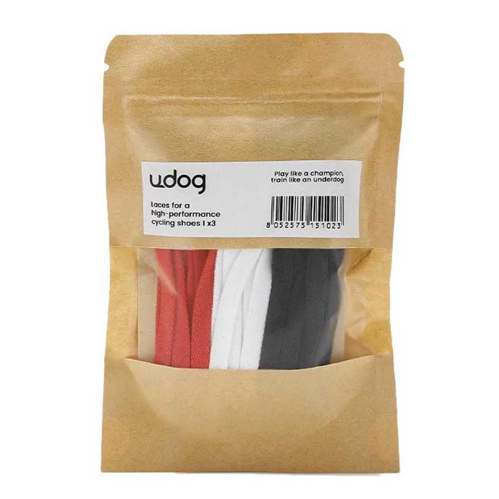 Los cordones UDOG han sido cuidadosamente seleccionados y probados para identificar los mejores cordones para una zapatilla de ciclismo de alto rendimiento. Los cordones tradicionales tienden a perderse durante el pedaleo, por lo que se utilizan cordones patentados que son planos y prensados, no se estiran ni tienen aire en el interior, lo que crea un efecto de nudo de cuerda que garantiza el calzado con el mejor ajuste, desde las carreras críticas más exigentes hasta las rutas de resistencia más largas.