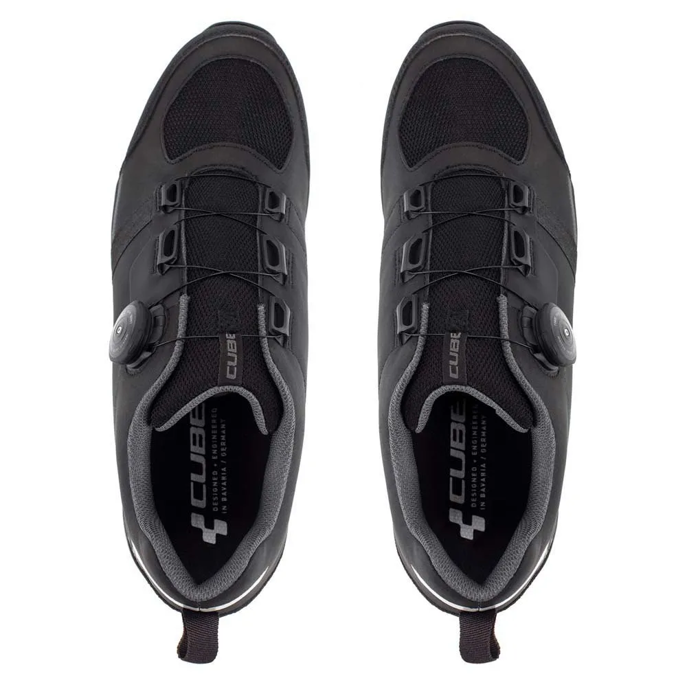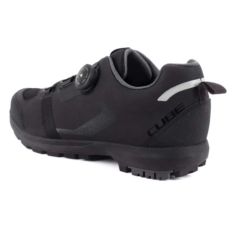 Una elegante zapatilla todoterreno con un sofisticado cierre de disco y un gran ajuste gracias a la plantilla y el moldeado de rendimiento CUBE Natural Fit optimizados ergonómicamente. Las características inteligentes, como el sistema de calce fácil y el sujetador de cordones, facilitan la vida en el sillín, mientras que la suela exterior de goma antideslizante es compatible con los sistemas de pedales automáticos y mantiene un punto de apoyo firme tanto dentro como fuera de la bicicleta. La parte superior resistente y la puntera reforzada mantienen los pies bien protegidos, mientras que la gran ventilación es cortesía de las rejillas de ventilación y los paneles de malla. Los detalles reflectantes en el talón mejoran la seguridad en condiciones de poca luz.