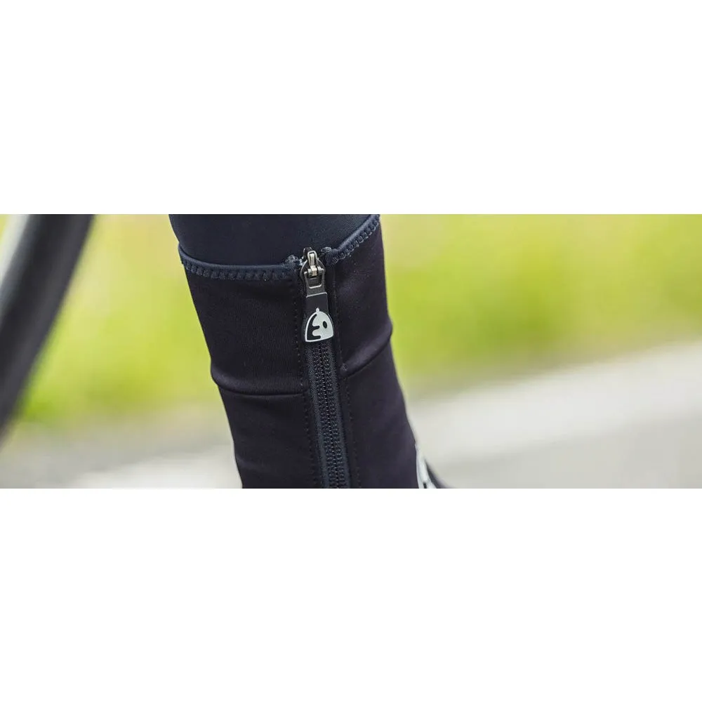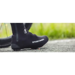 Cubrezapatos repelentes al agua cortados de la tela PROTECT de Etxeondo. Ligero, altamente resistente al agua y al viento, con un puño alto para un ajuste mejorado.
