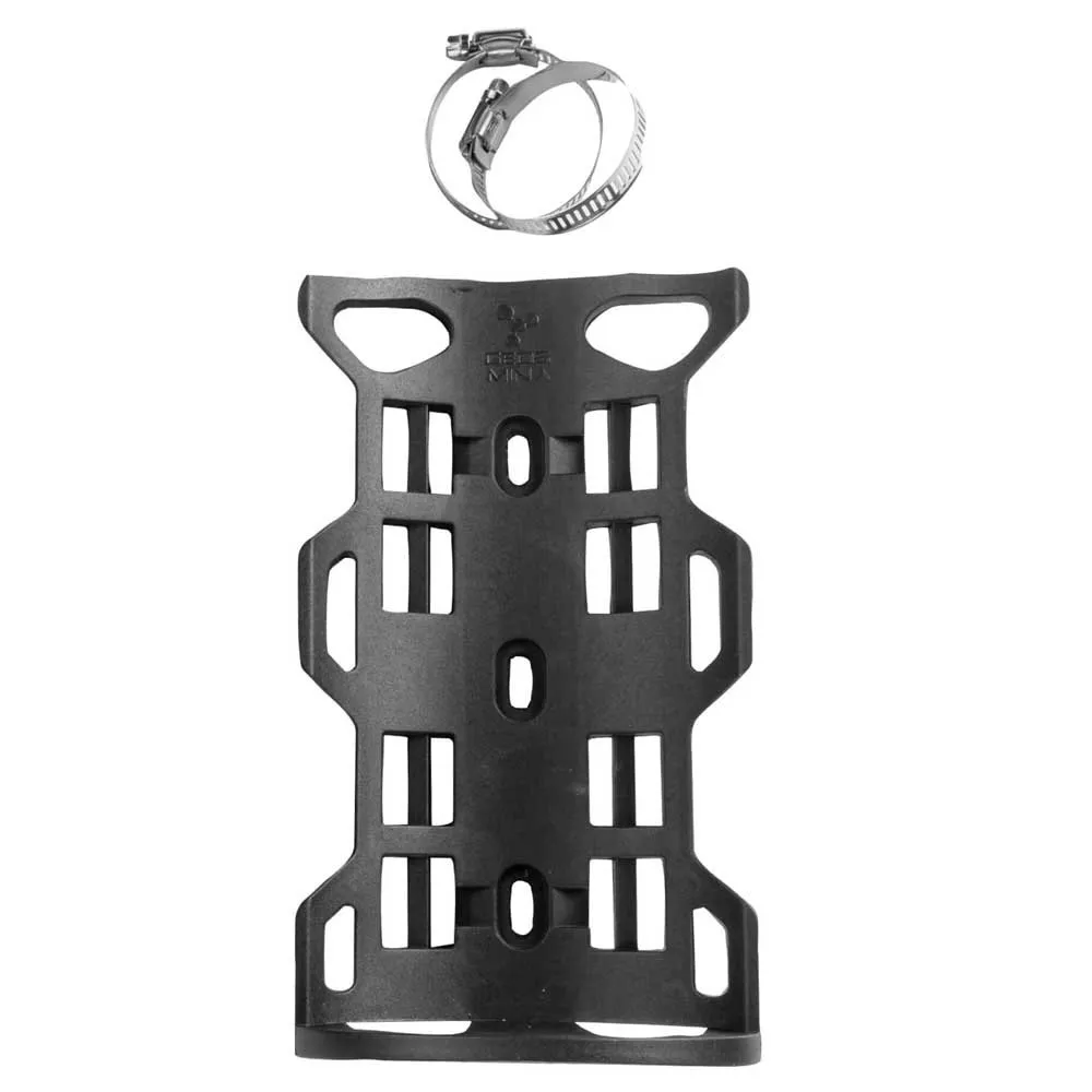 Por otro lado, está el soporte rígido (Anything Cage), de composite que puede albergar la bolsa o que se puede utilizar por separado para llevar otros utensilios, como una botella de agua, una bolsa o una colchoneta de camping. Los artículos se pueden unir a la jaula usando las dos correas incorporadas. Estas correas cuentan con hebillas YKK de alta resistencia que facilitan el manejo con una sola mano. La jaula se puede atornillar a la horquilla (si la horquilla es adecuada) o a las roscas del portabidones en el cuadro de la bicicleta.