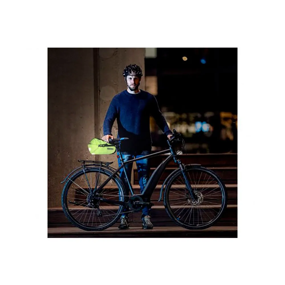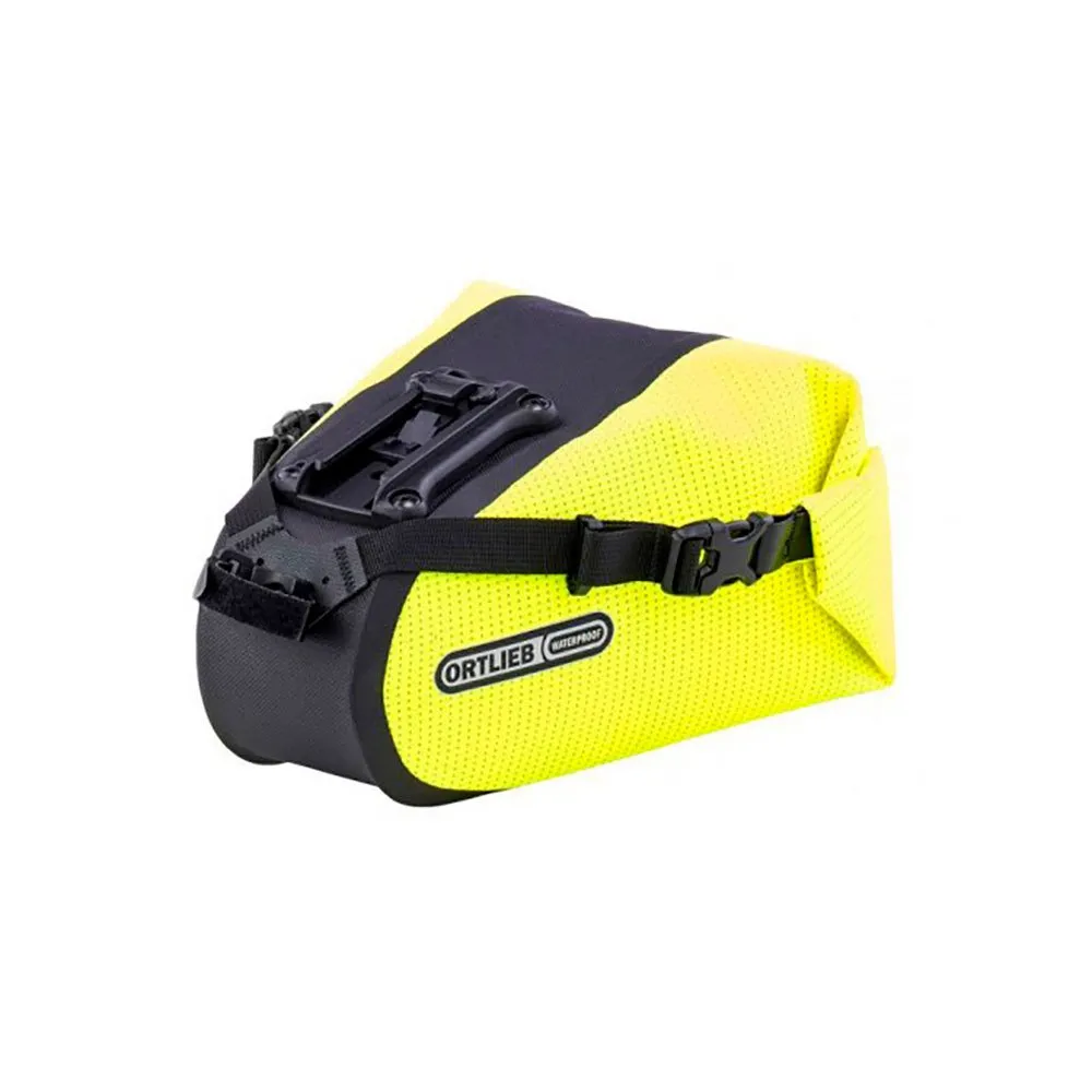 El sillín water-water-baging water bag Two High Visability está compuesto por un tejido reflectante en toda su superficie, con colores negro y amarillo fluorescente, una combinación que llama la atención y asegura una mejor visibilidad.