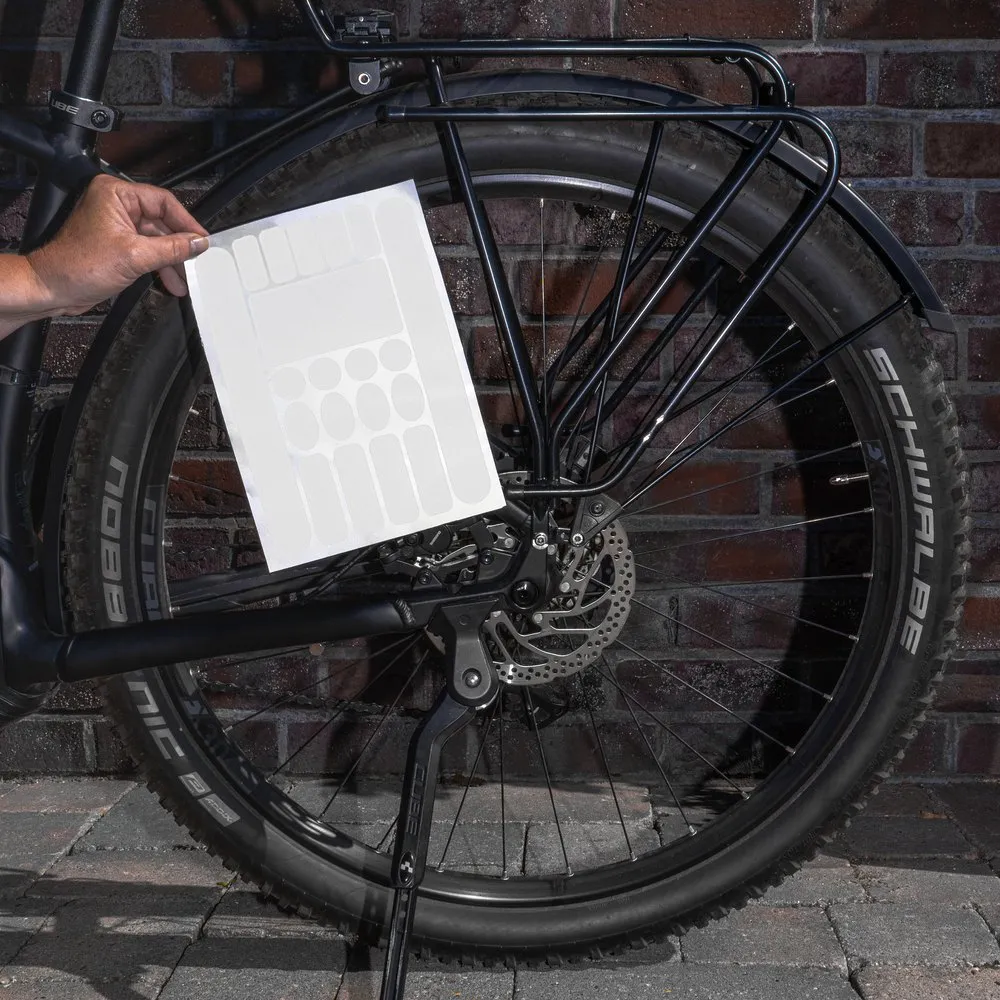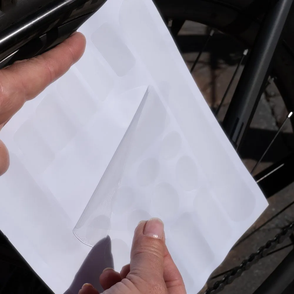 Diferentes pegatinas – ya sea para portaequipajes, manillar o puntales centrales, en un juego de protección contra arañazos se incluyen pegatinas en 6 tamaños diferentes, que con seguridad cubren el lugar que quieres proteger.