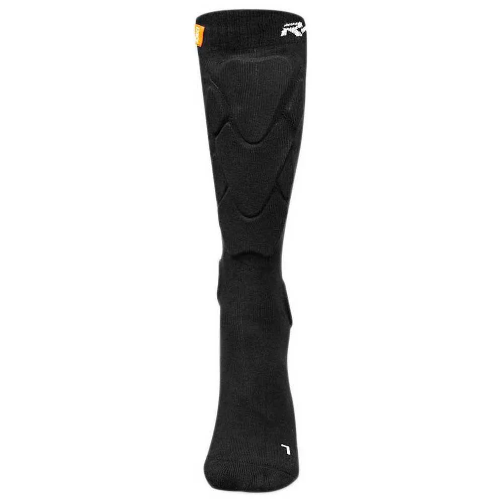 ANTI SHOX son calcetines protectores que cuentan con almohadillas D3O® en espinillas y maléolos, lo que les confiere un alto nivel de protección frente a golpes y proyecciones. Su construcción en algodón y poliamida aporta un muy buen confort y evacuación del sudor. Imprescindible para los ciclistas de descenso, freeride y BMX.