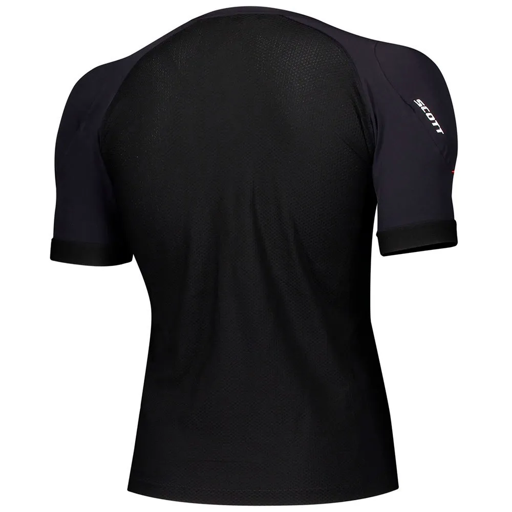 la capa base protectora de scott está diseñada para riders de descenso, enduro y trail. está hecho para quienes buscan versatilidad y protección. el acolchado adicional de clavícula y bíceps garantiza la máxima seguridad y le permite conducir aún más rápido en los senderos.