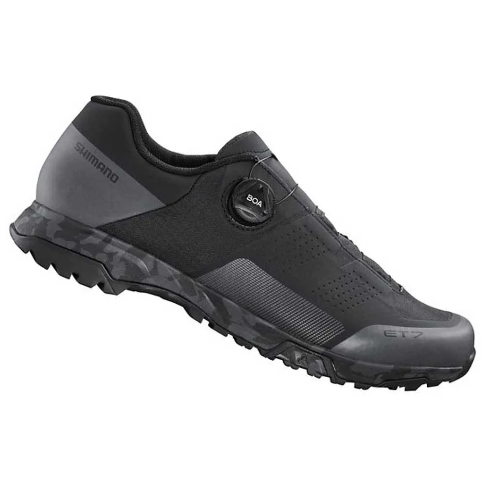 La zapatilla Shimano ET700 MTB Shoes han sido diseñadas para el ciclismo de montaña y el de aventura pues cuenta con todas las características que necesitas para vivir una experiencia de lujo, con gran agarre y control del pedal, estabilidad, tracción al caminar, comodidad y hasta detalles reflectantes que te harán visible en la noche.