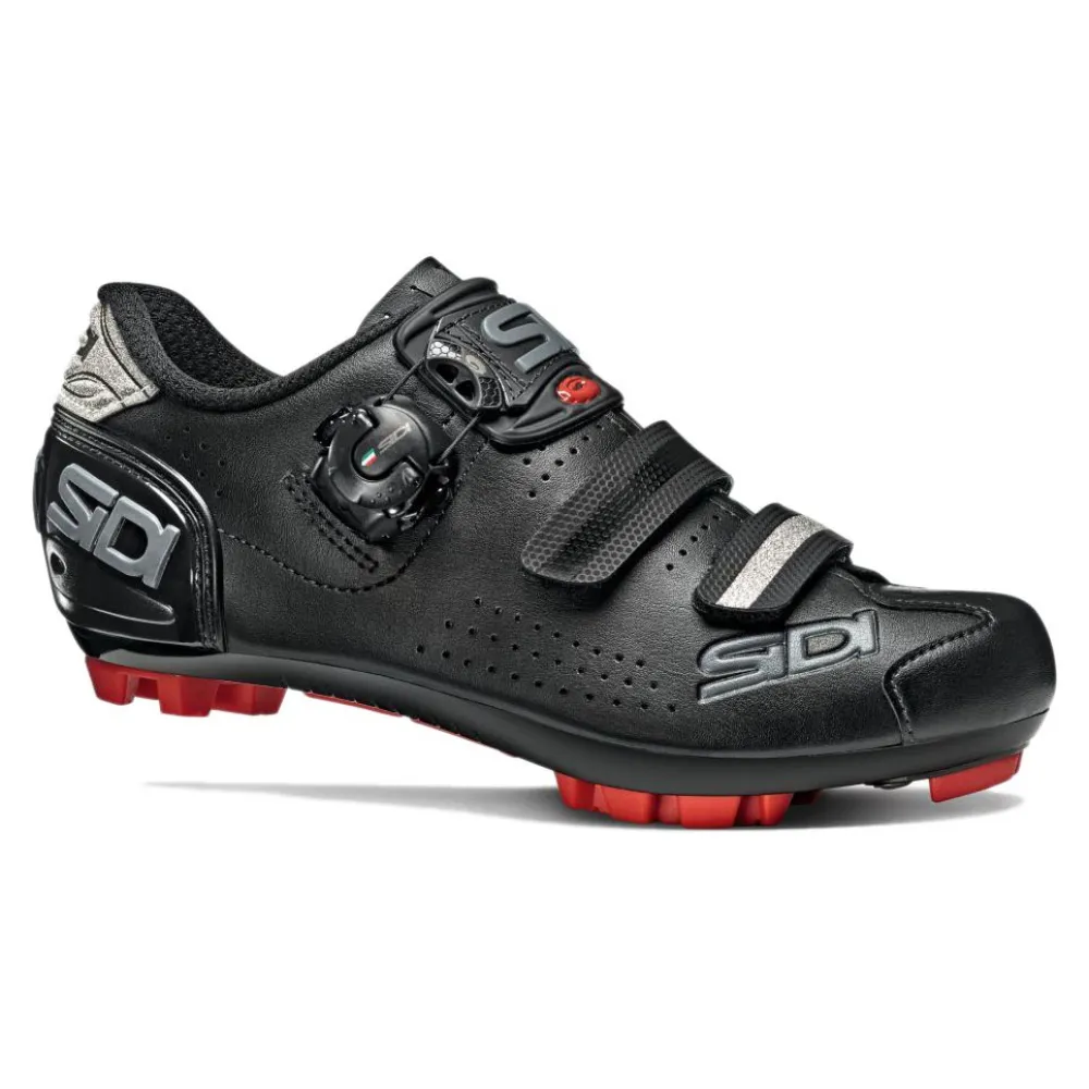Más ligera y de mayor rendimiento, la nueva suela Sidi MTB está hecha de nylon con inserciones de PU (poliuretano). La forma de la suela se ha diseñado específicamente para bicicletas de montaña, permite un buen agarre, facilita la dispersión del barro y proporciona la estabilidad adecuada. El inserto central con el logotipo de Sidi funciona como antideslizante y es práctico y útil especialmente para los usuarios menos experimentados. El área del dedo del pie que está más sujeta al desgaste, especialmente al caminar, se puede reemplazar por tornillos y aún ofrece la posibilidad de montar crampones para mejorar la tracción en terrenos particularmente lodosos. RS17 representa el resultado final en términos de rigidez para pedalear y flexión para caminar.