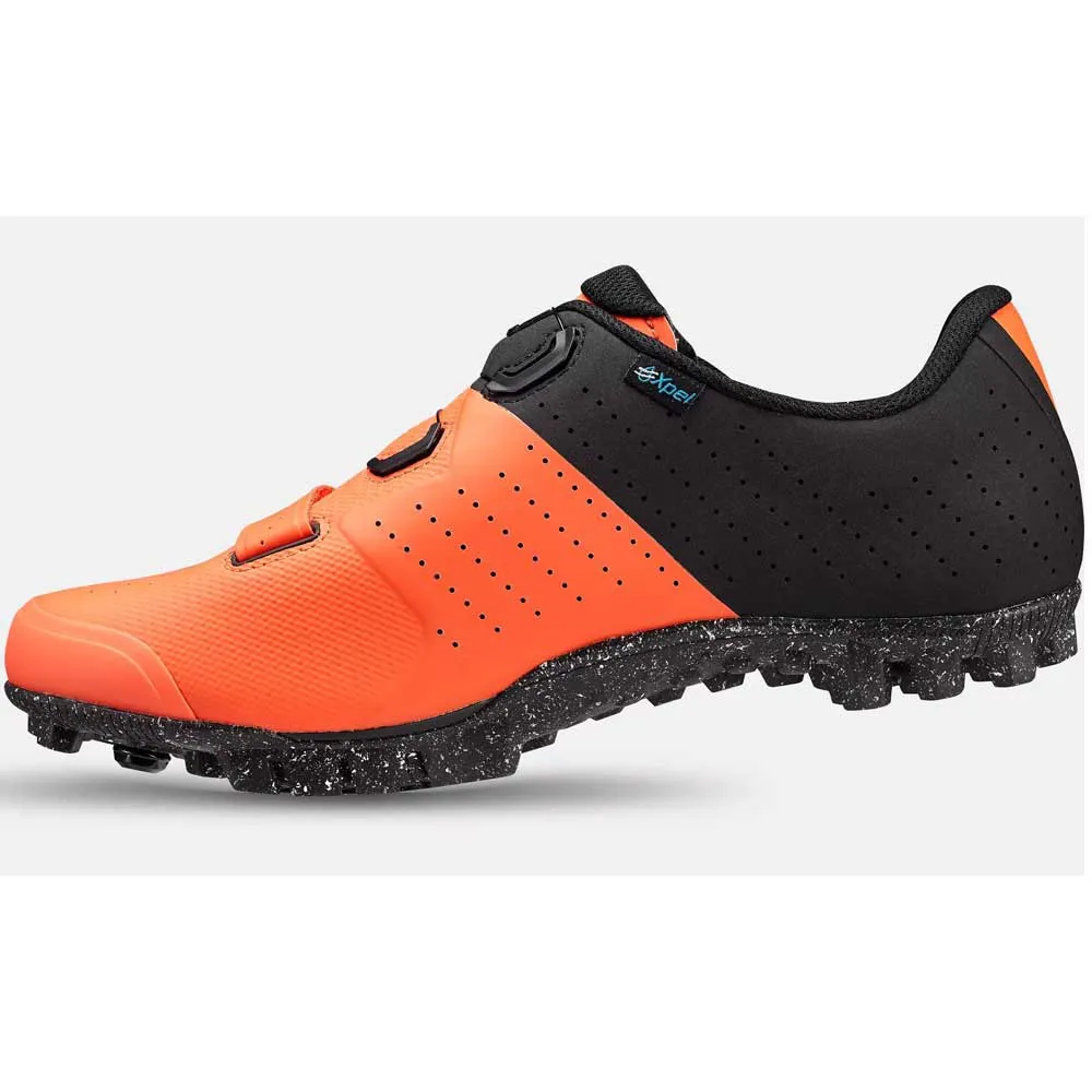– Sabemos que aventurarse fuera de la carretera significa aventurarse en lo desconocido, por lo que le hemos dado la malla Recon 3.0 Xpel para crear un ajuste cómodo que repele el agua, mantiene el zapato liviano y lo seca tan rápido como lo hace. Nuestro compuesto Slipnot proporciona una cobertura total de goma de la suela exterior para una tracción fuera de la bicicleta en cualquier superficie, con bandas de rodadura abiertas para expulsar el barro.