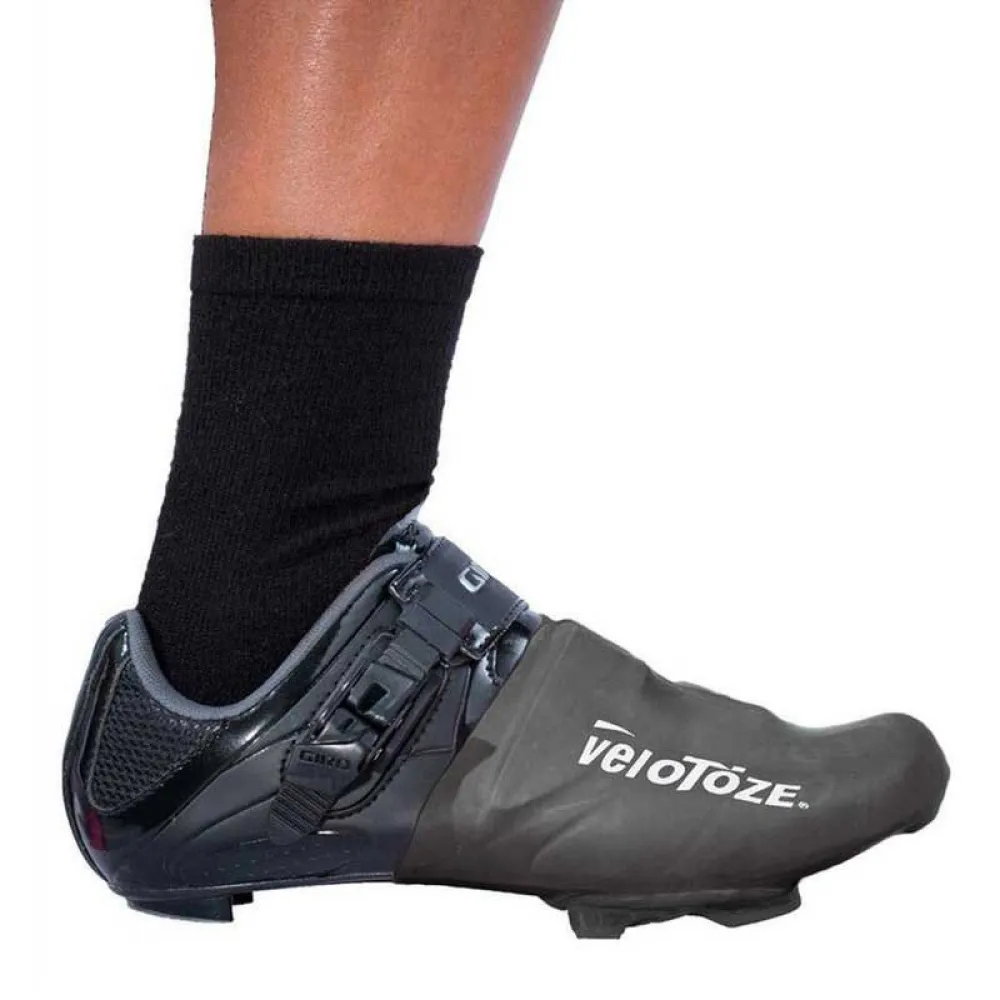 Las fundas veloToze Toe están diseñadas para mantener calientes los pies de los ciclistas en las mañanas frescas y con niebla. Están hechos de un material flexible y liviano que es impermeable, a prueba de viento y aerodinámico. Son muy livianos, pesan menos de 25 gramos por par y son compactos, se pliegan más pequeños que un tubo de repuesto, lo que les permite caber fácilmente en un bolsillo de jersey o en una alforja. Los triatletas pueden ponerse sus zapatillas de ciclismo antes de una carrera, ahorrando un tiempo valioso en la transición. Ya sea el día de la carrera, el día de entrenamiento o simplemente otro día de viaje, las fundas Toe Toe veloToze mantendrán sus pies cómodos.